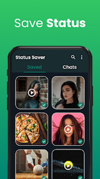 Este downloader de status para WhatsApp permite que você baixe status diretamente do aplicativo. É tão simples quanto abrir o aplicativo, selecionar o contato e clicar no botão "Baixar Status".